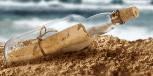 Se trata de lanzar un mensaje de aviso, confesar un secreto, dejar un recuerdo o pedir socorro o lo que quiera en ese recipiente al que llamaremos botella, para que puedan ser revelados en un futuro o cápsulas del tiempo en que se deja un mensaje a generaciones venideras.