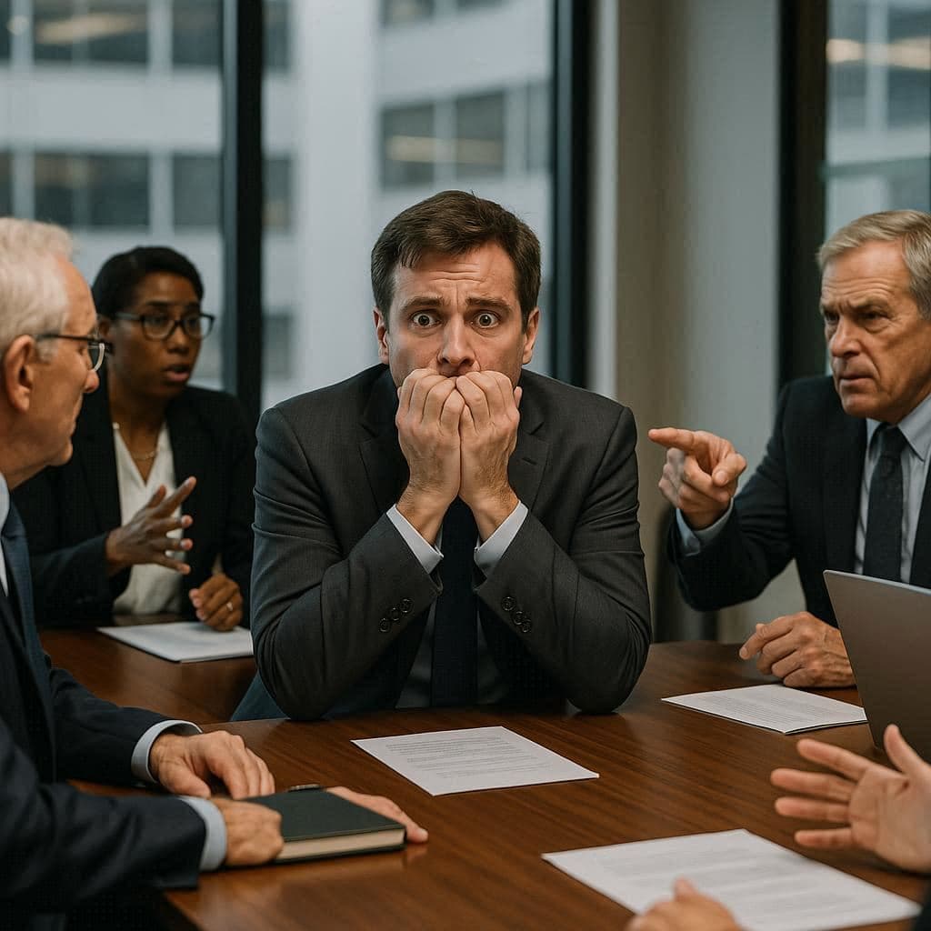 - En medio de una reunión de empresa con el director general y los grandes jefes, descubres que te has quedado en blanco