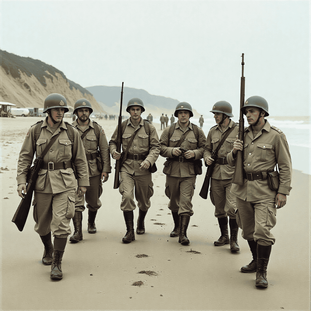 - Eres un combatiente aliado en el desembarco de Normandía el mismo día en que llegas junto a tus compañeros a una de las playas