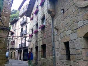 Después bajamos unas escaleras de grandes piedras y pasamos bajo otro arco que nos abre el paso a la plaza de Santiago. Aquí contemplamos casas tradicionales que guardan historias de mar. La decoración de las fachadas nos pinta imágenes coloridas con un encanto sinigual, creando un ambiente que invita a la relajación y al optimismo. Cuando el sol ilumina en su totalidad la plaza de Santiago parece que nos hayamos en un pueblo de cuento, rodeados de un monte irisado de luz que dibuja el entorno con trazos de ensueño.