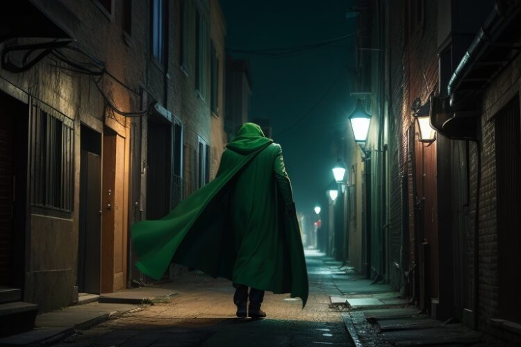 Al doblar una esquina, un gato negro se cruzó en su camino con tal pasmo para el científico que su corazón no pudo soportar la tensión. La vida se escapó de su cuerpo en un instante, dejándole yacente sobre la fría superficie de piedras.