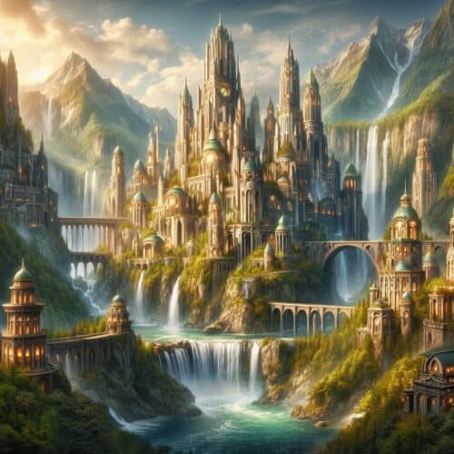 Han quedado grabadas en mi mente las imágenes que contemplaba de la ciudad de los elfos aquellas tardes tormentosas del mes de abril, cuando en ocasiones todo es más gris por las nubes opacas que lo cubren todo. Sin embargo, al resurgir el sol de primavera, mi espíritu se reconfortaba observando cómo las aguas espumosas de un blanco puro caían por el borde del desfiladero, oculto en los páramos y colinas de las Montañas Nubladas.